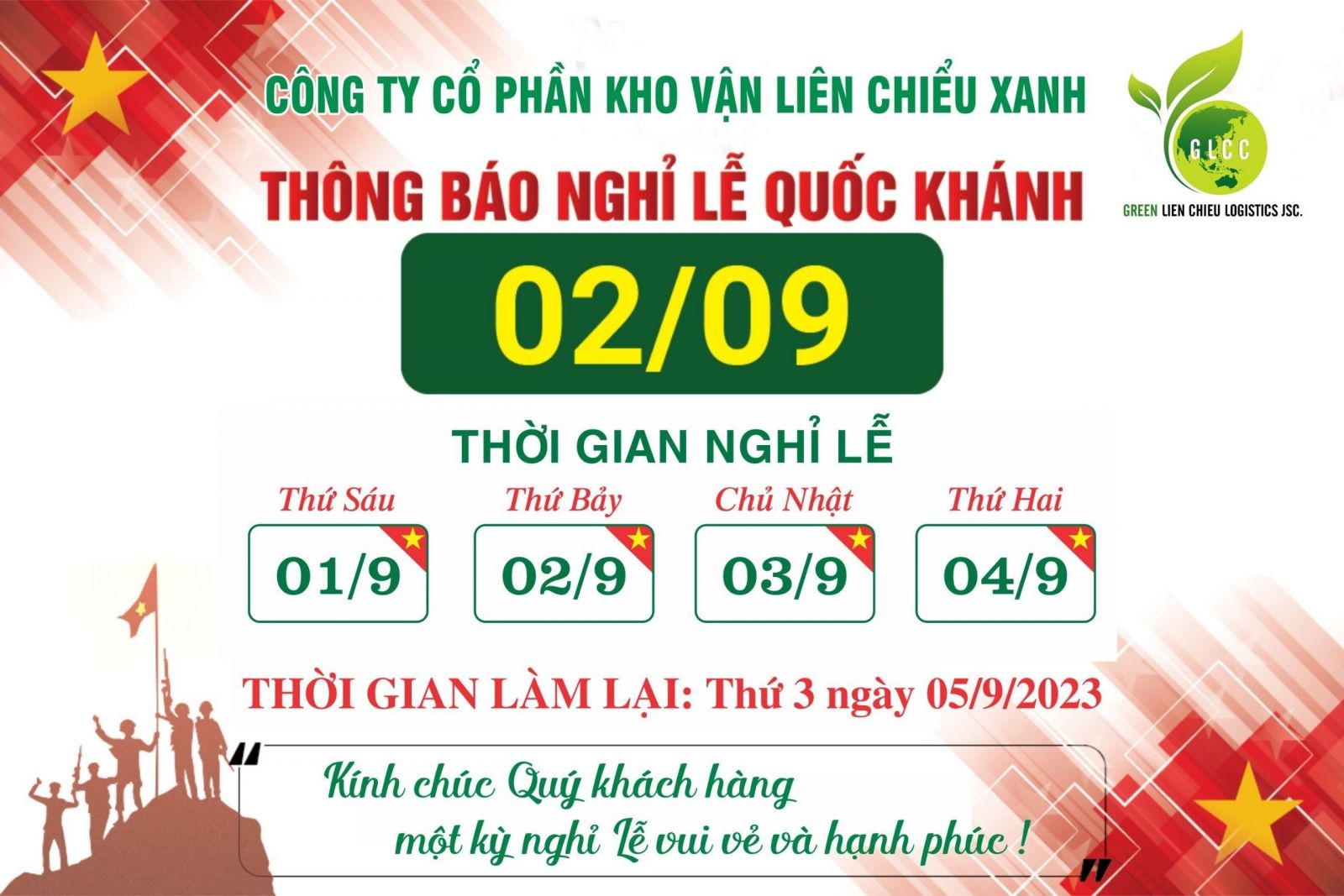 GLCC xin thông báo lịch nghỉ lễ như sau: